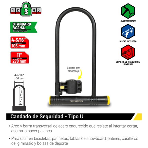 - El candado “U” tiene un arco de doble bloqueo para resistencia a la palanca.