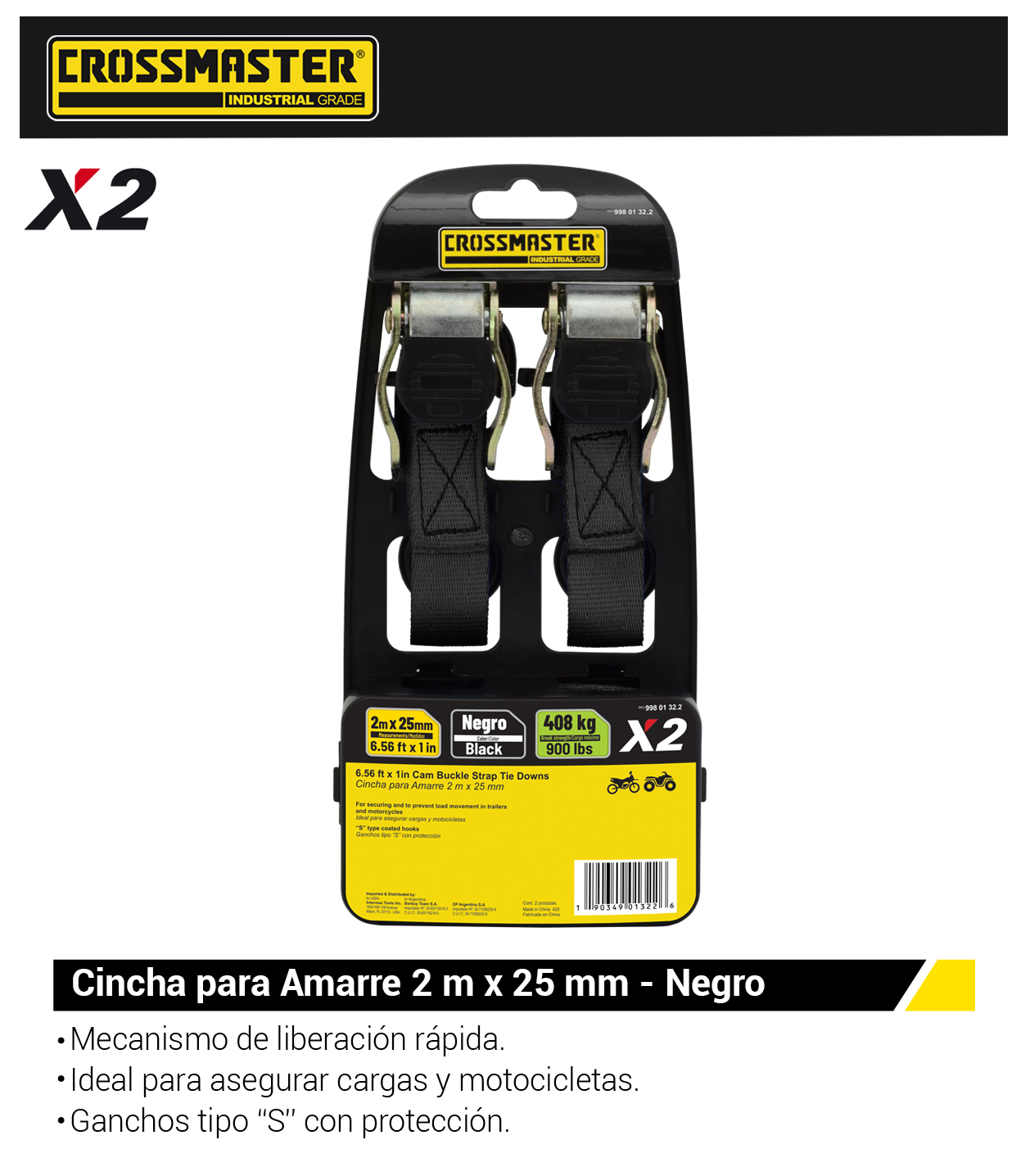 Cincha para amarre 2 metros x 25 mm – Color negro