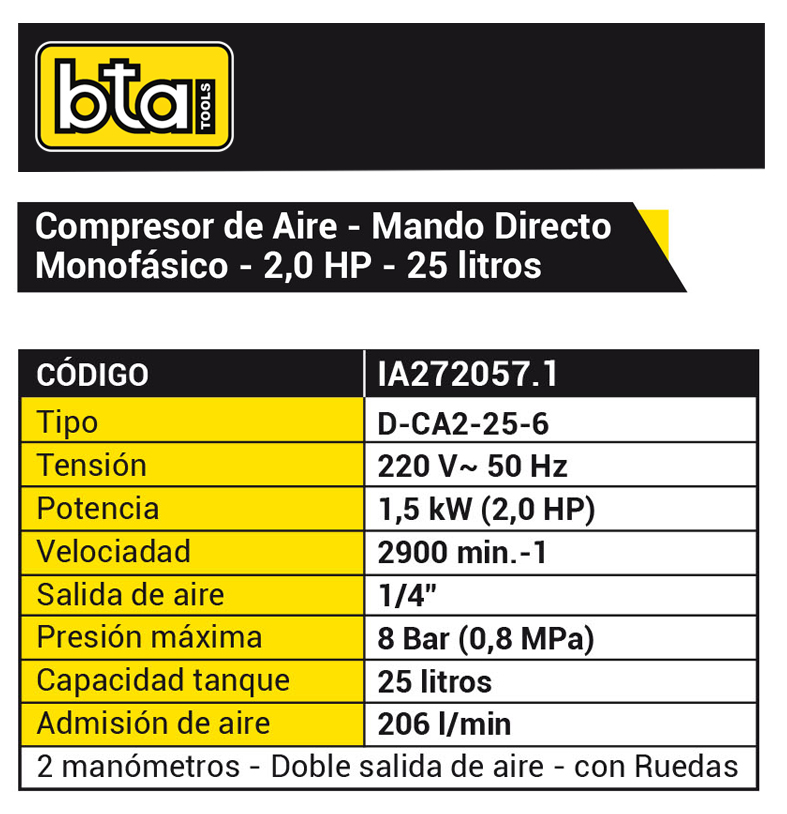Compresor de aire – Mando directo monofásico – 2.0 HP – 50 litros: