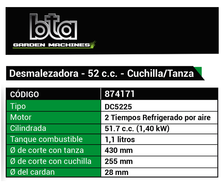 - ø de corte con tanza: 430 mm.