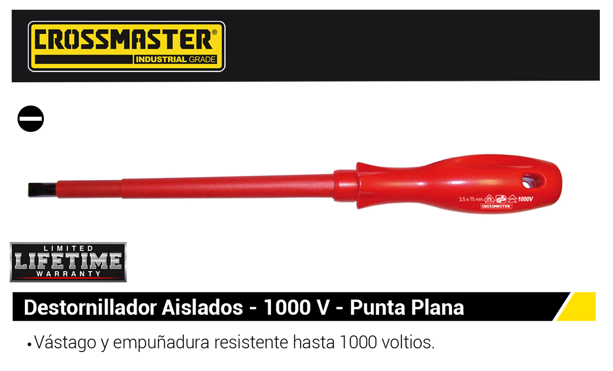 Destornillador Aislado punta plana – 1000 V – 2.5 x 75 mm: