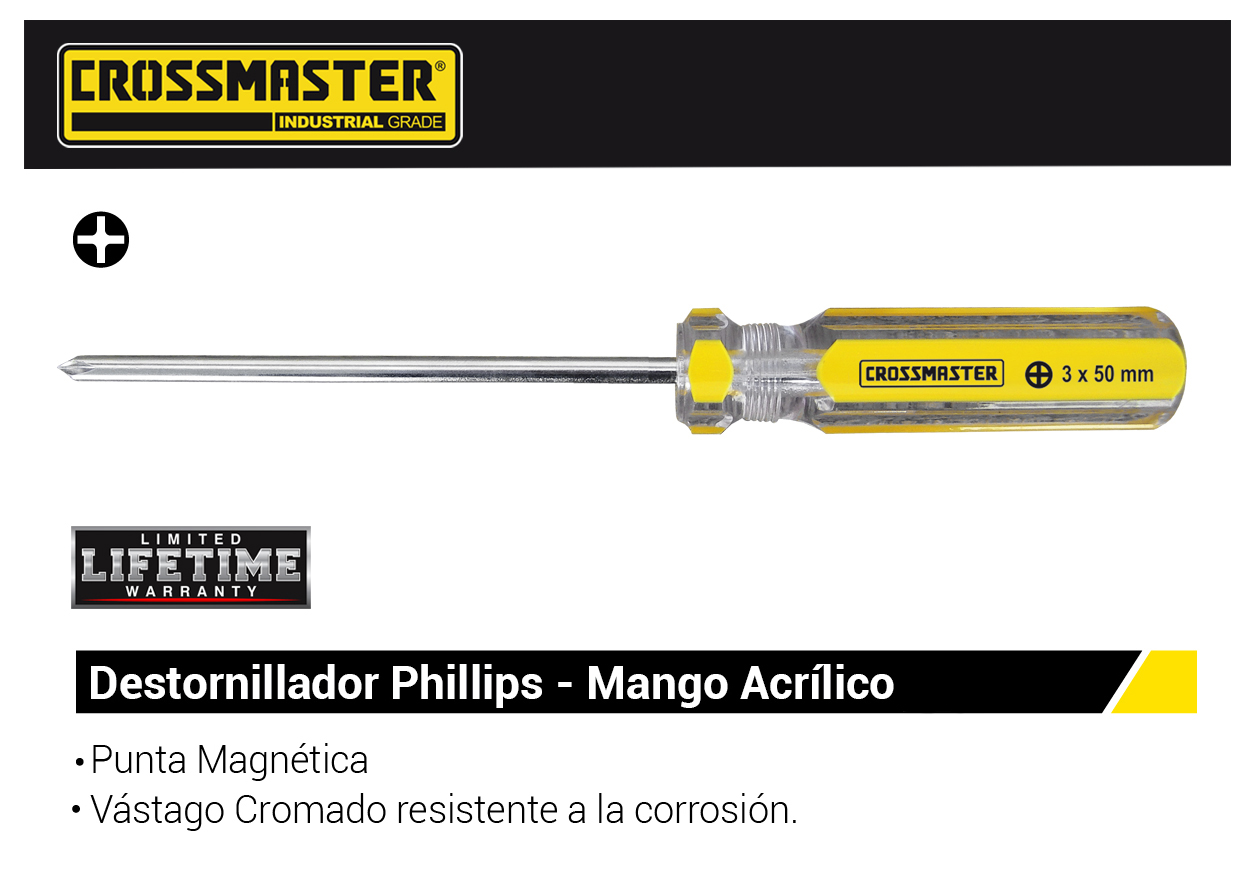 Detornillador Phillips – Mango de Acrilico – Punta magnetica 3x50mm