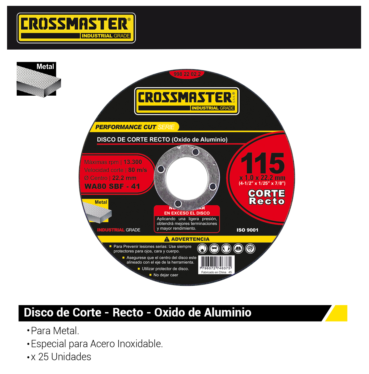 • 115 x 1,6 x 22,2 mm (4-1/2” x 1/16” x 7/8”)