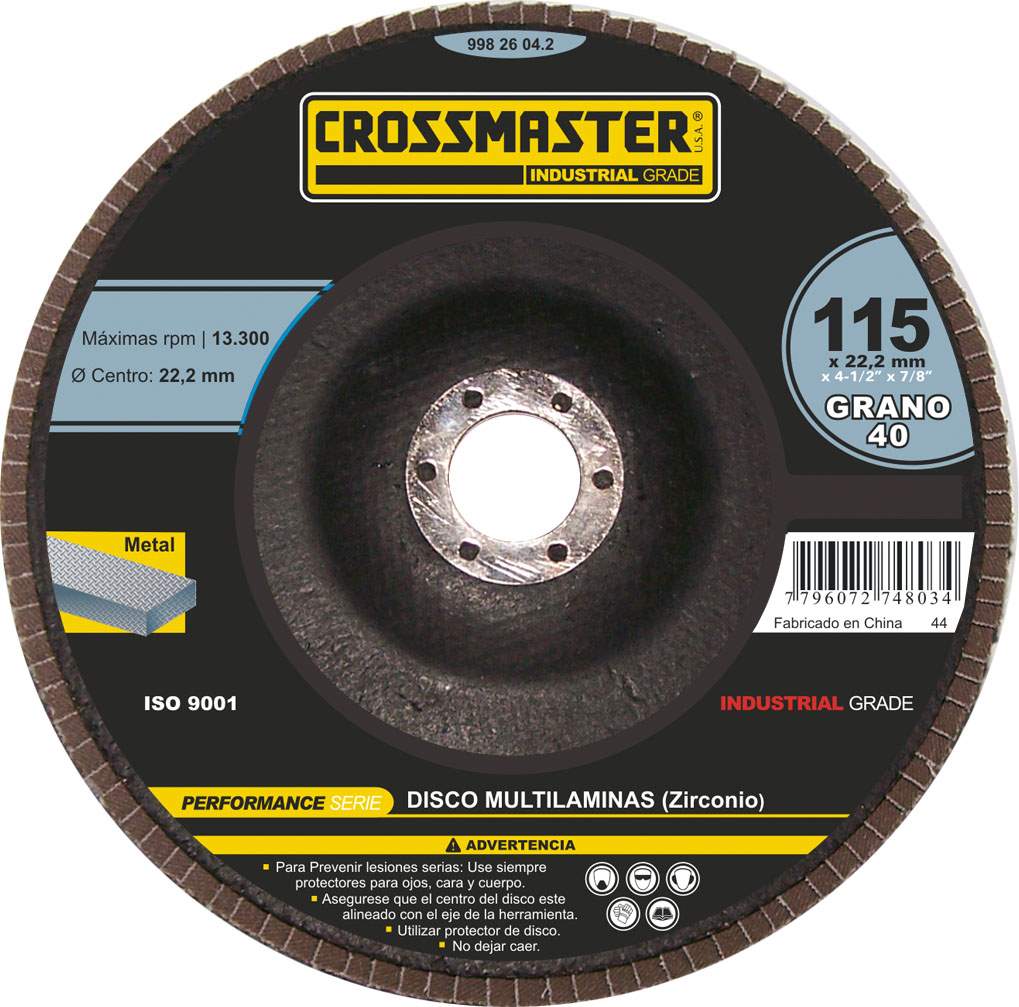 DISCO PARA AMOLADORA DE 9 PULGADAS CROSSMASTER 9982468.4 USD 45,628.00