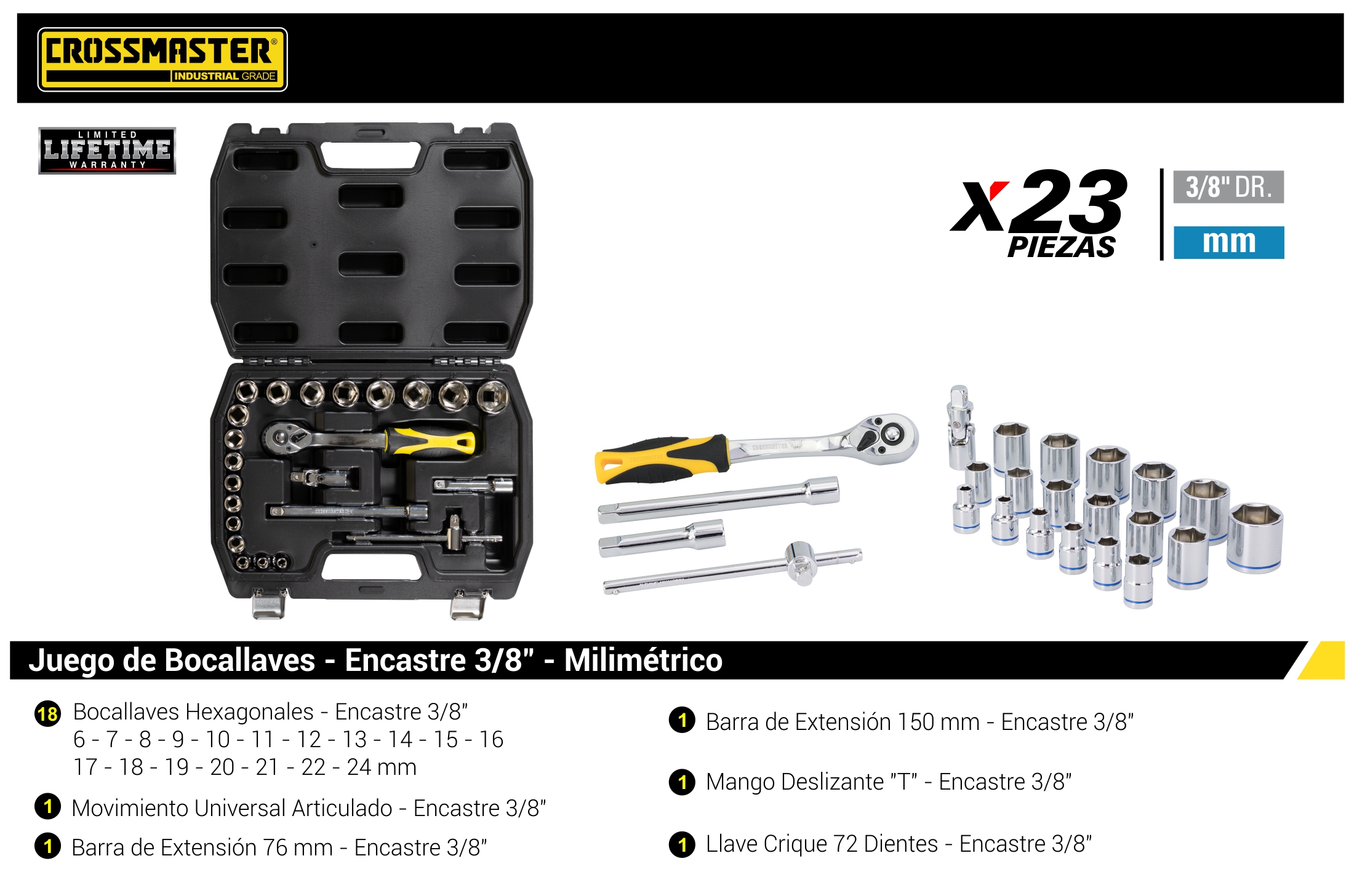 Juego de bocallaves – Encastres 3/8″ – Milimétrico – 23 piezas