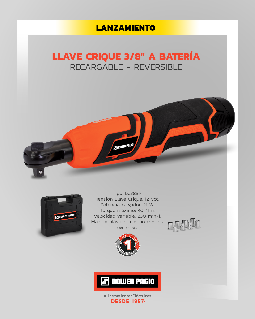 - Llave Crique 3/8″ a Batería Recargable – Reversible