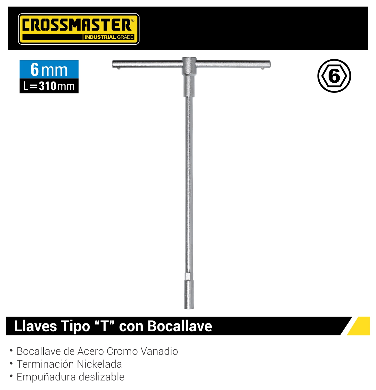 Llave tipo T – Con bocallave – ø 6 mm: