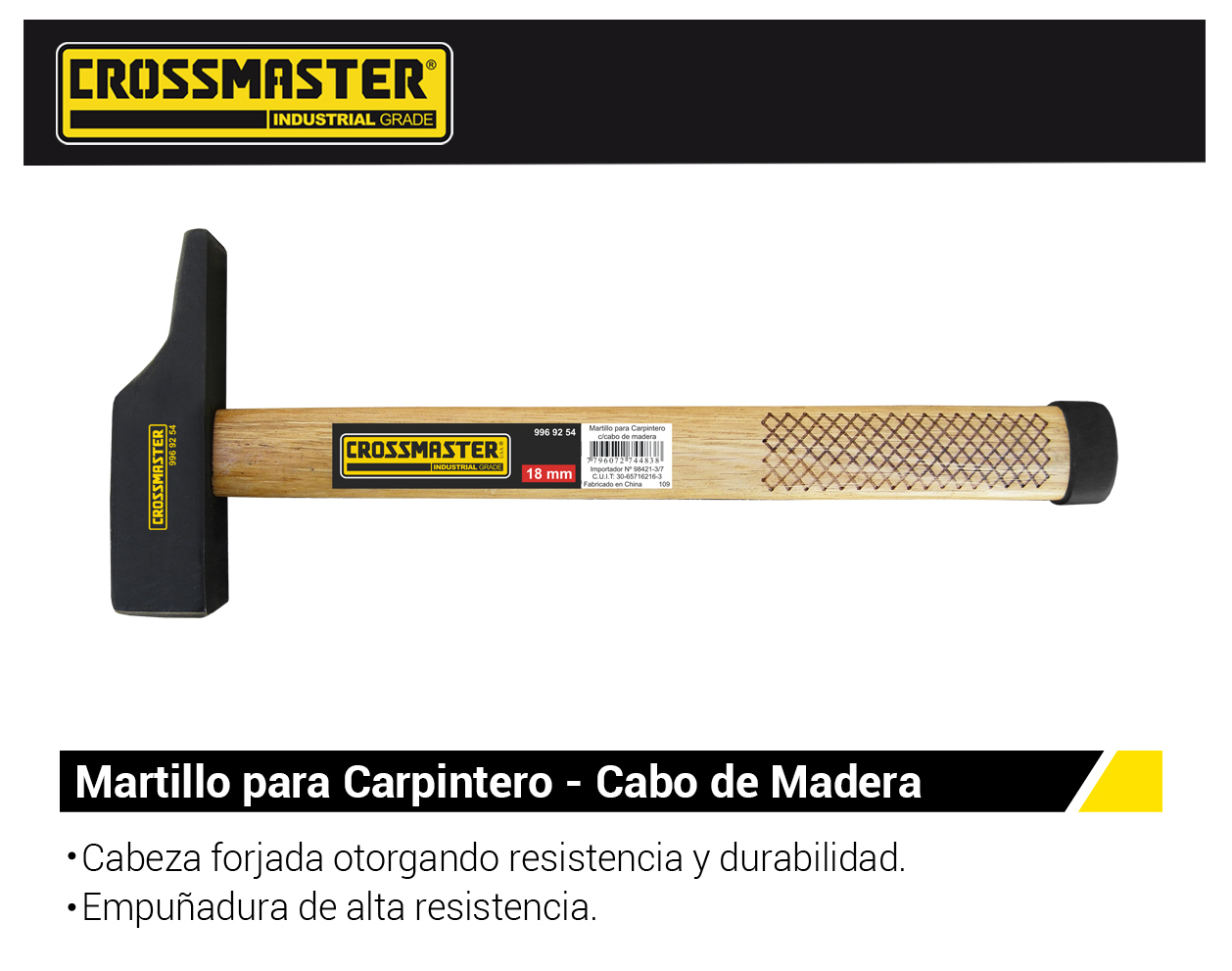 - Cabeza forjada otorgando resistencia y durabilidad