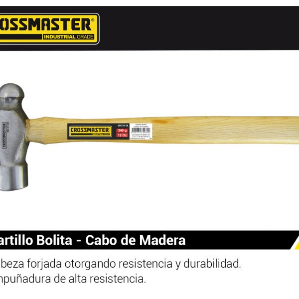 Martillo bolita – Mango cabo de madera – 340 gr.
