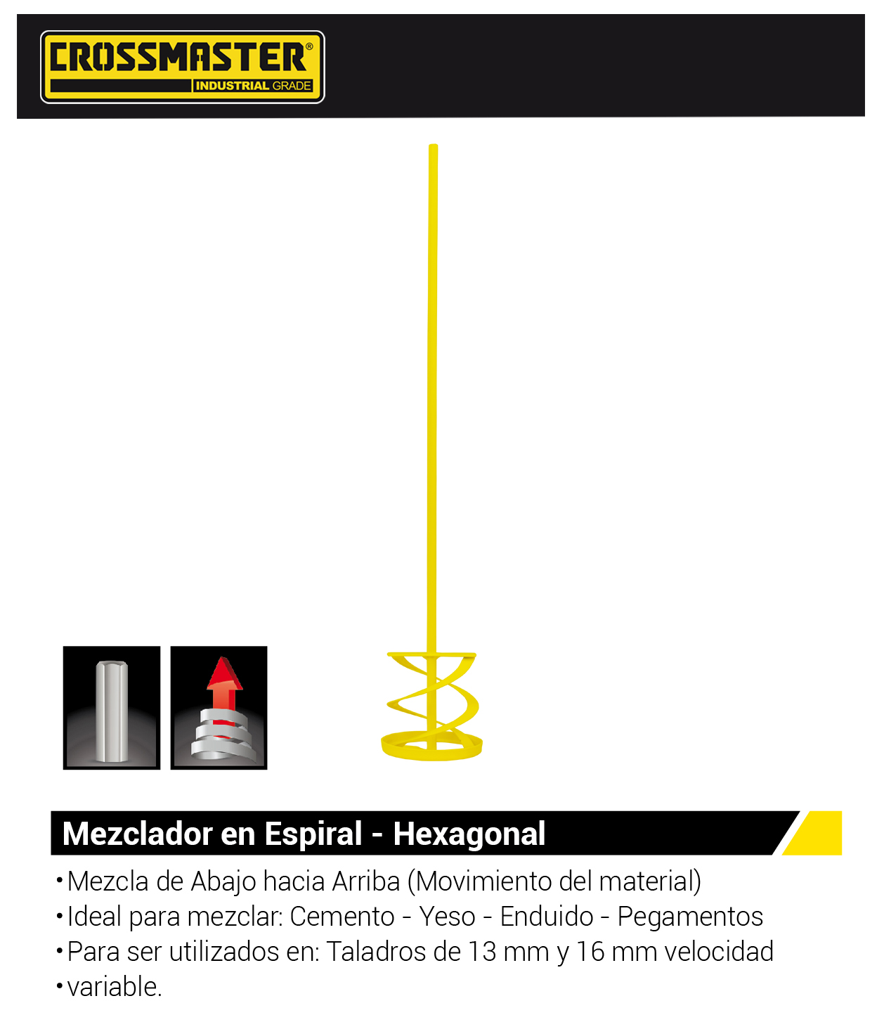 InicioPRODUCTOSHERRAMIENTASALBAÑILERIA – CARPINTERIA – HERRERIA Mezclador en espiral – Hexagonal – ø = 100 mm (4″) – L = 600 mm (23 1/2″)