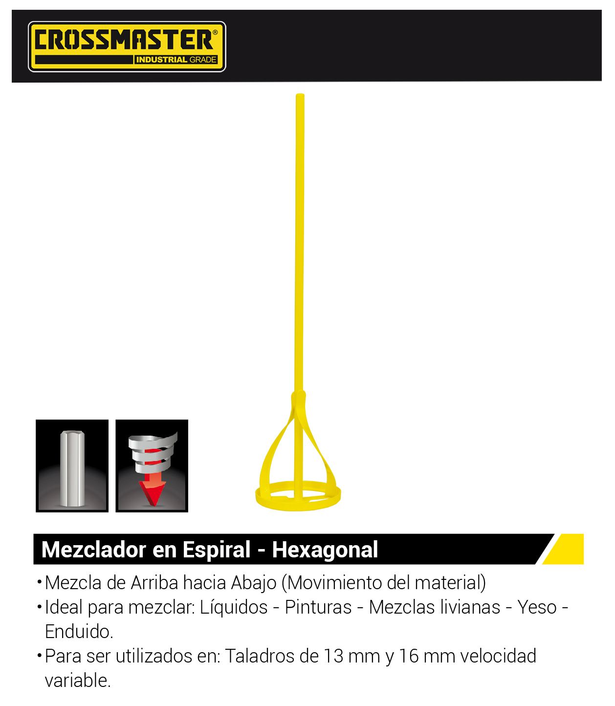 - Ideal para mezclar líquidos, pinturas, mezclas livianas, yeso, enduido.