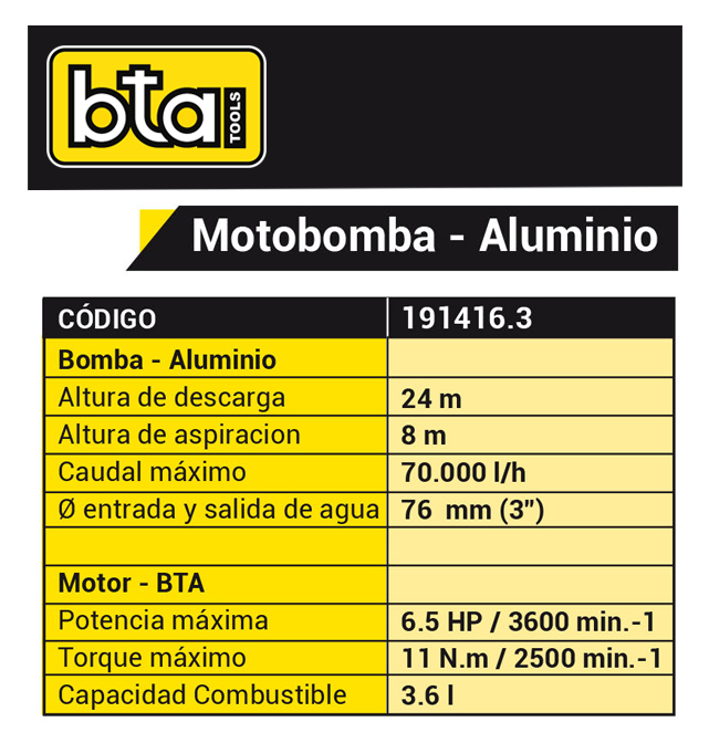 Motobomba – Aluminio – 70.000 l/h – 3″