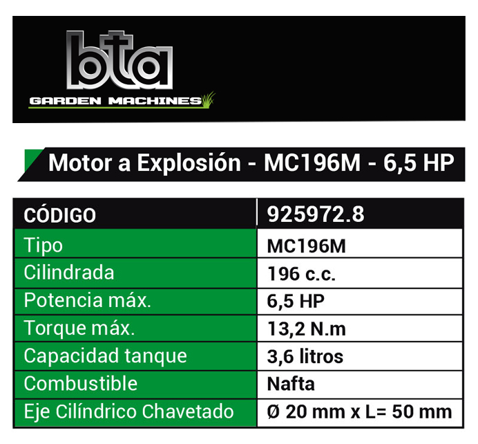 - Eje cilíndrico Chavetado: ø 20 mm x L=50 mm.