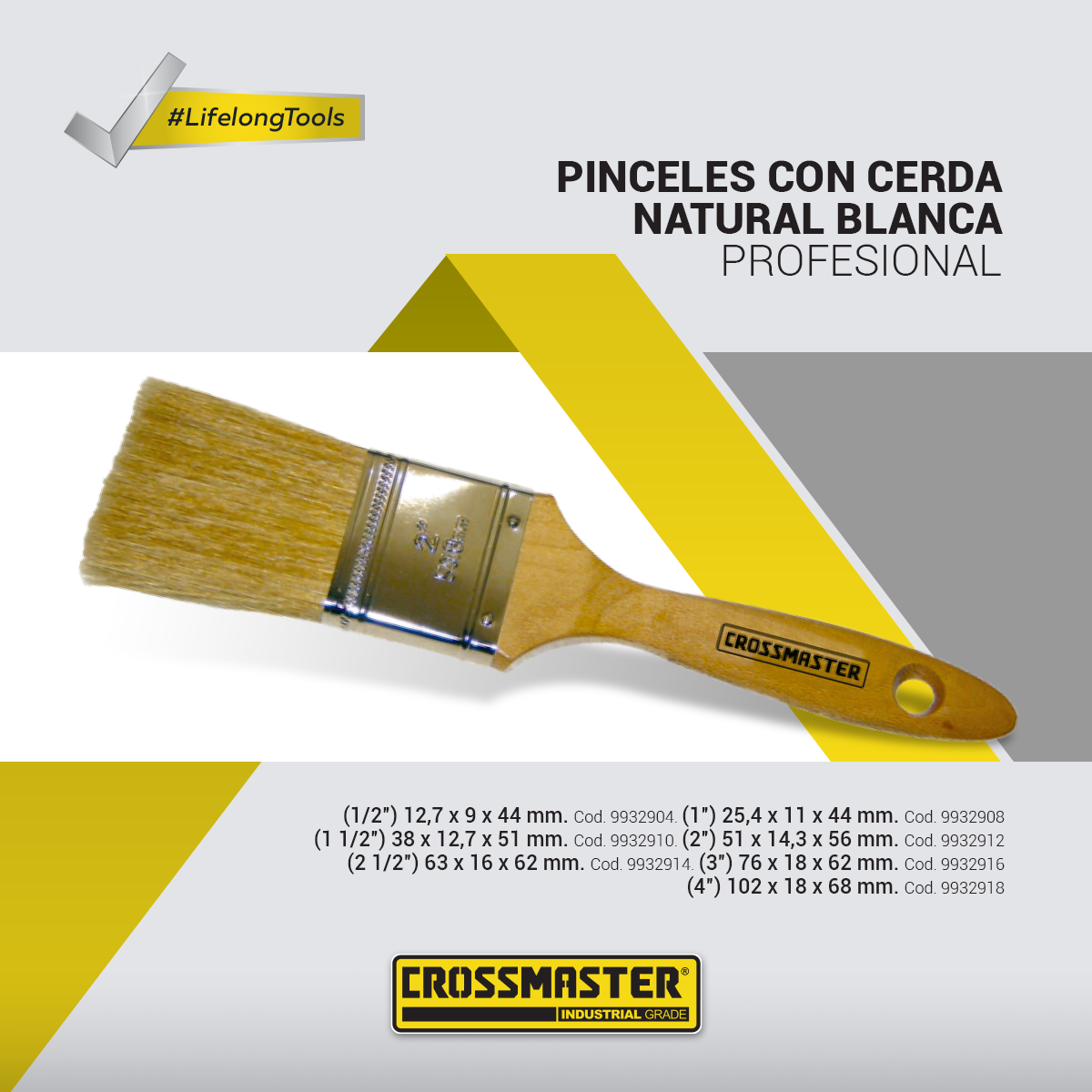 - (½”) 12,5 x 9,0 x 44 mm (ancho-espesor-largo)