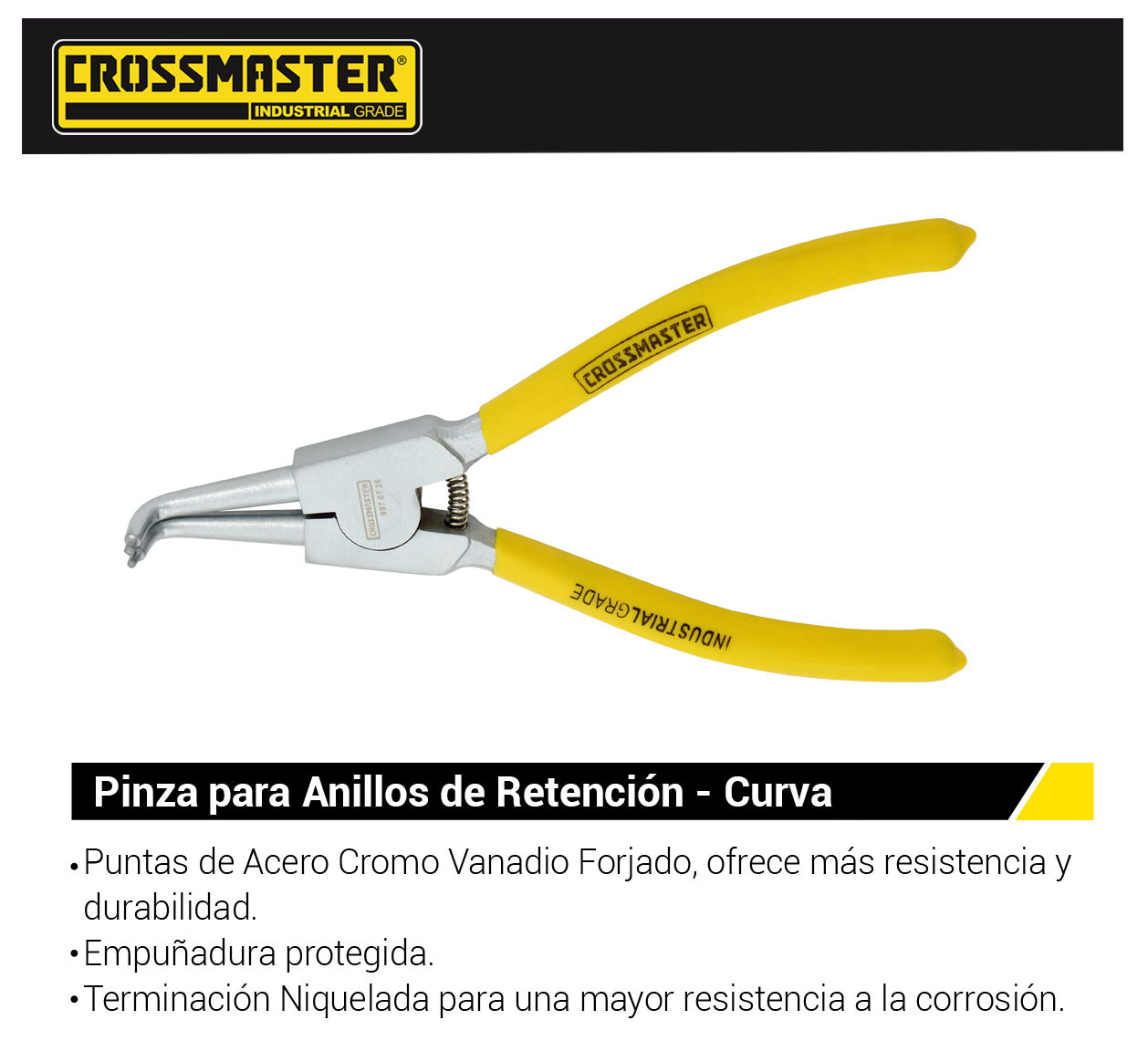 Pinza para anillos de retención – Curva – 178 mm (7″) – Interna: