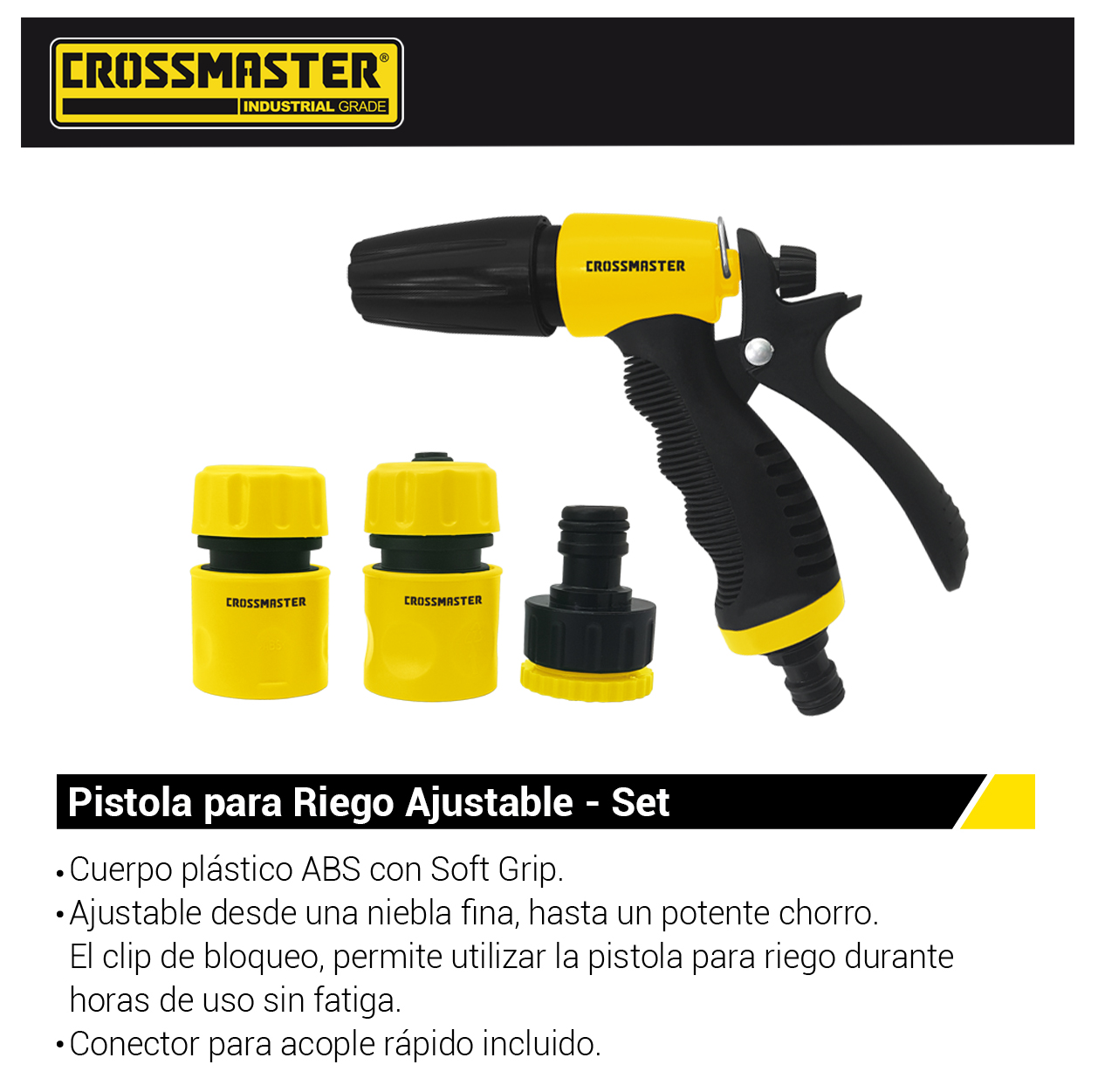 - Ajustable desde una niebla fina, hasta un potente chorro.