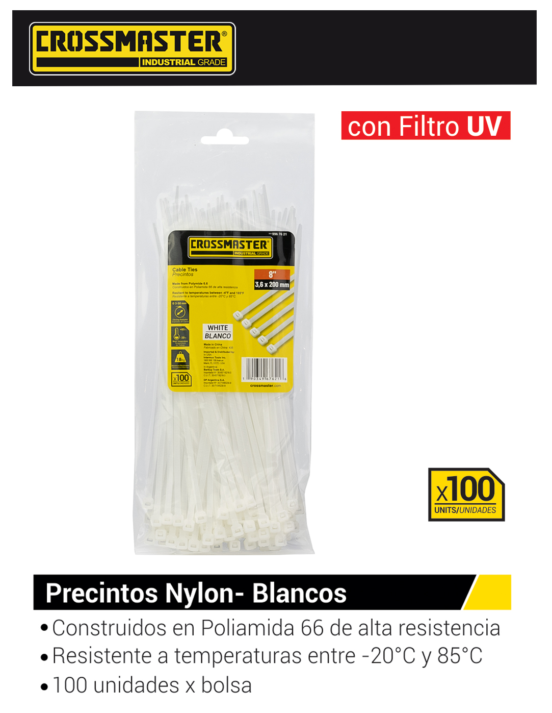 - Construidos en Poliamida 66 de alta resistencia.