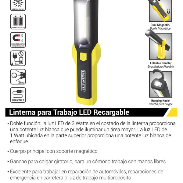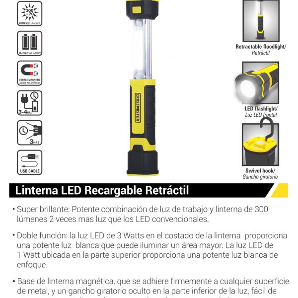 Linterna LED Recargable retractil Crossmaster