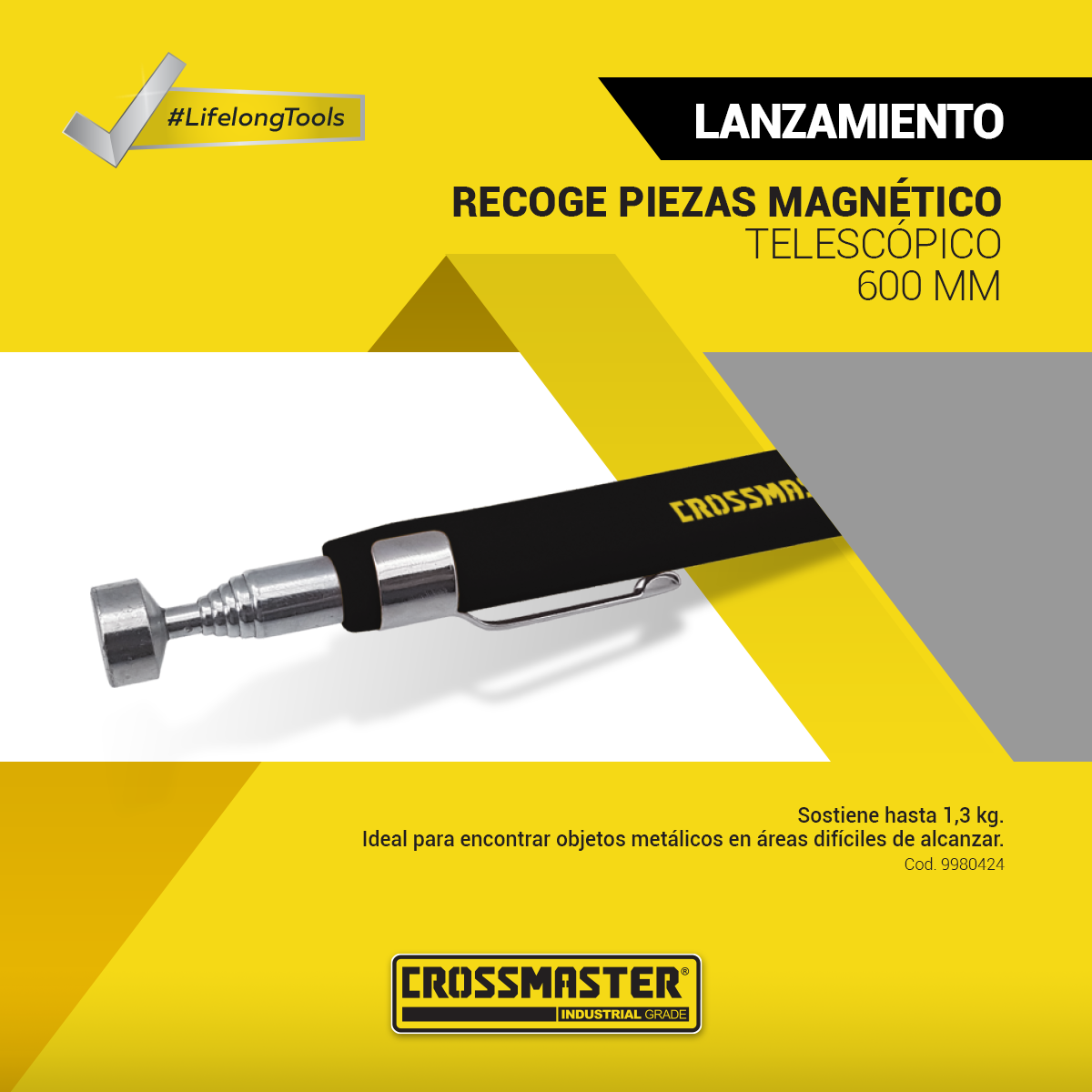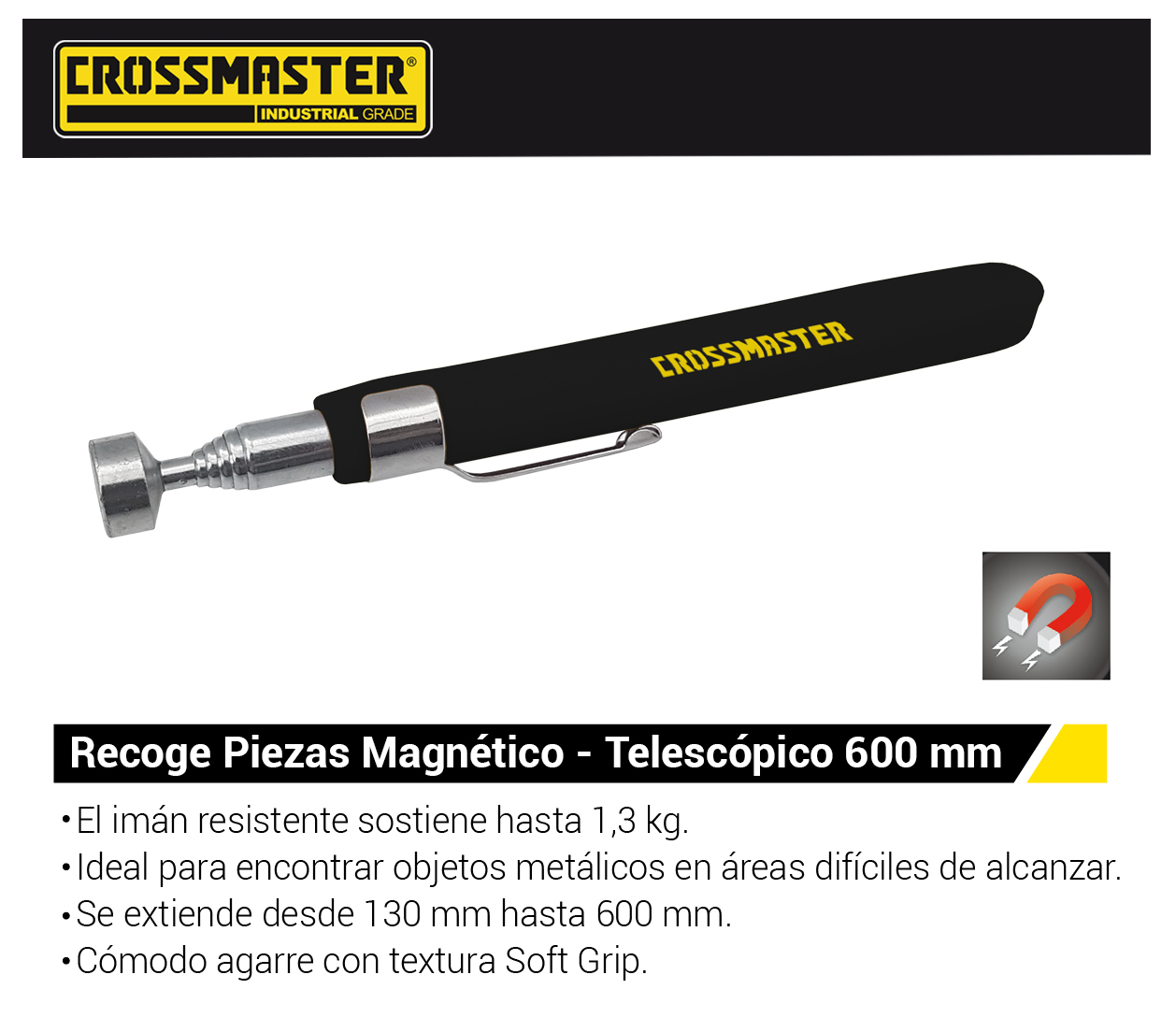 Recoge piezas magnético con LED – Telescópico 600 mm: