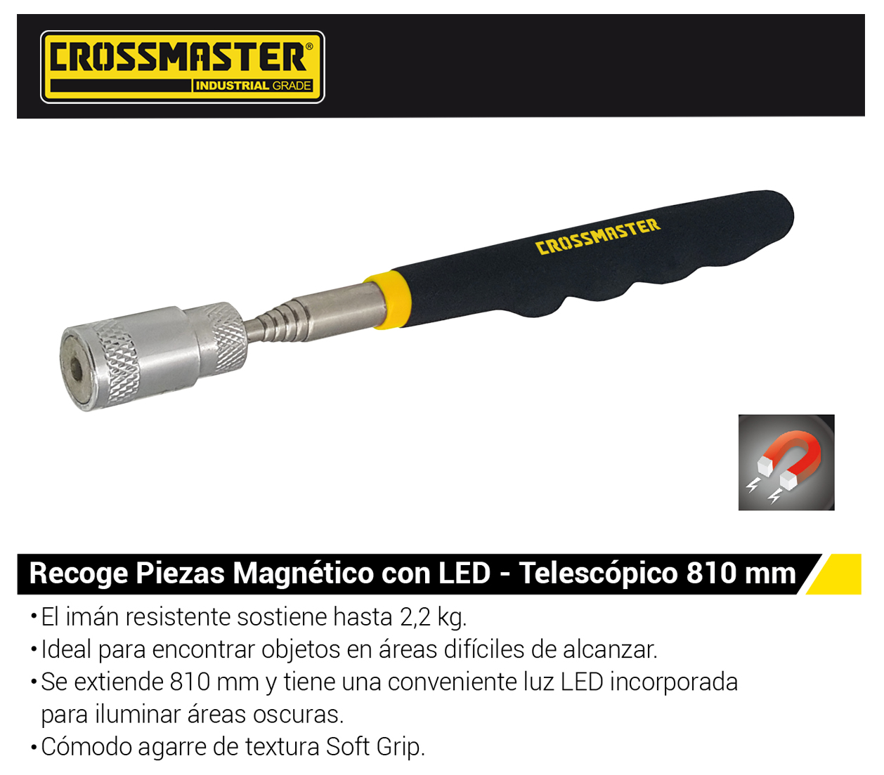 - Se extiende 810 mmy tiene una conveniente luz de LED incorporada para iluminar areas oscuras