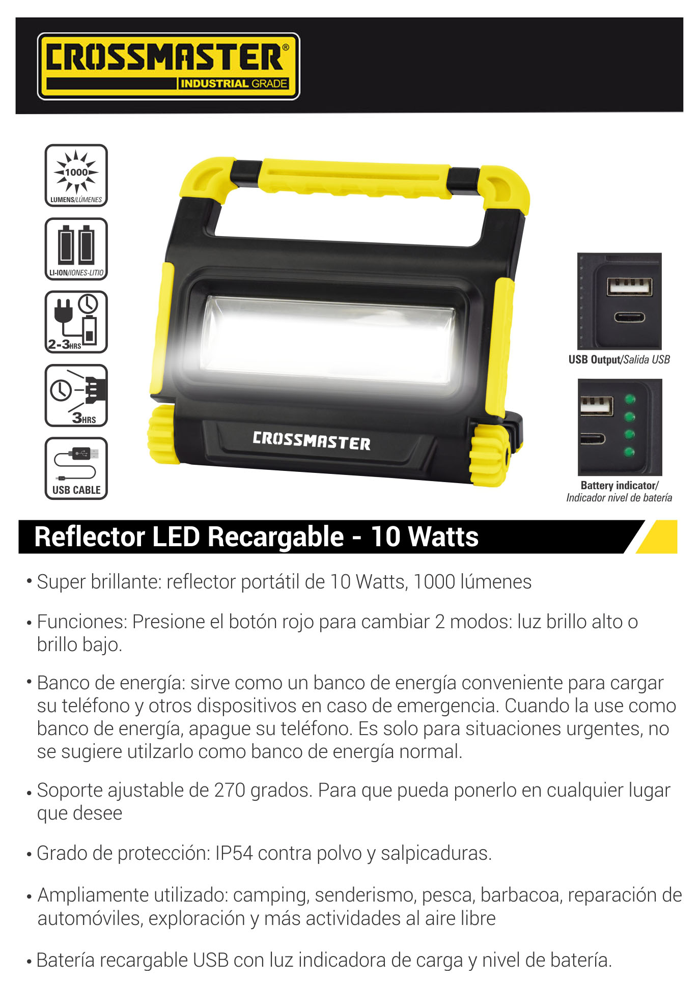 InicioPRODUCTOSHERRAMIENTASELECTRICIDAD – ILUMINACIONReflectores Led Reflector LED recargable de 10 watts