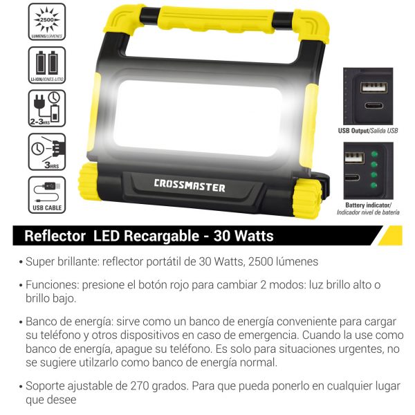 Reflector LED recargable de 30 watts