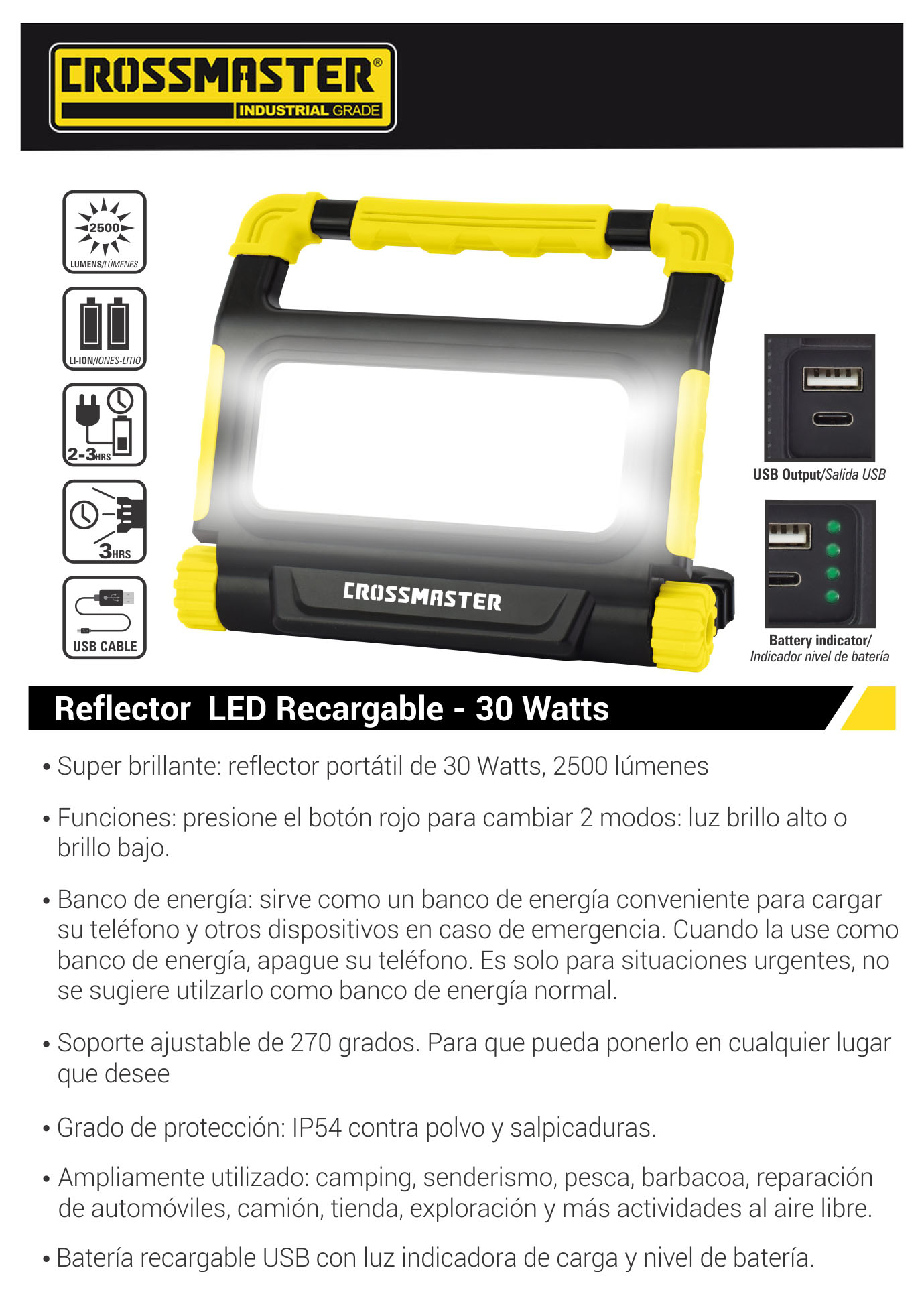 - Super brillante reflector portatil de 30 watts, 2500 lumenes