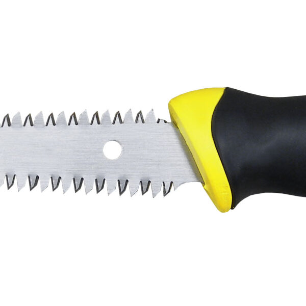 - Mango Bi-material, ergonomico para mayor control y confort, atornillado a la hoja dotandolo de una distribucion uniforme de la fuerza a lo largo del dentado