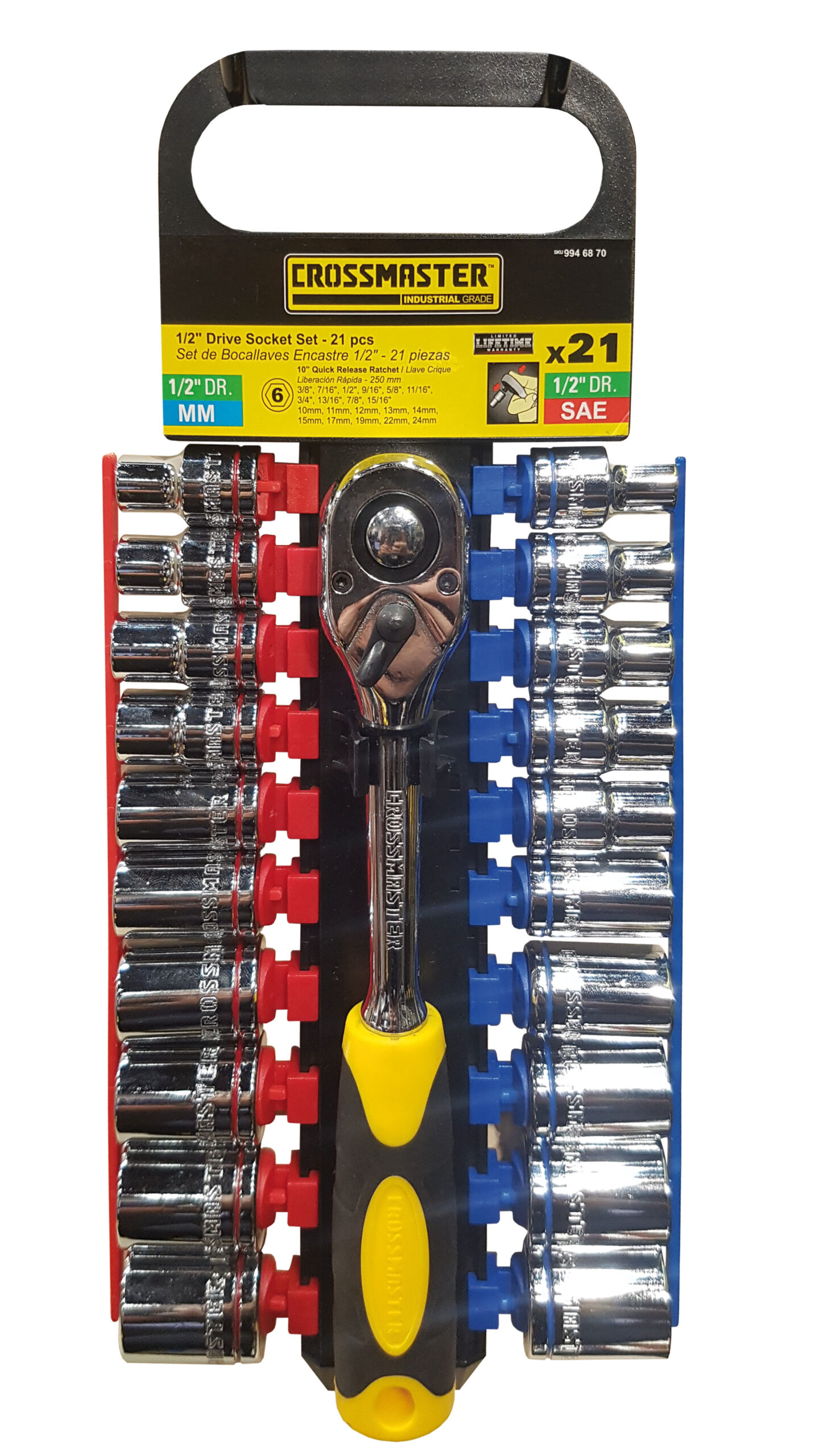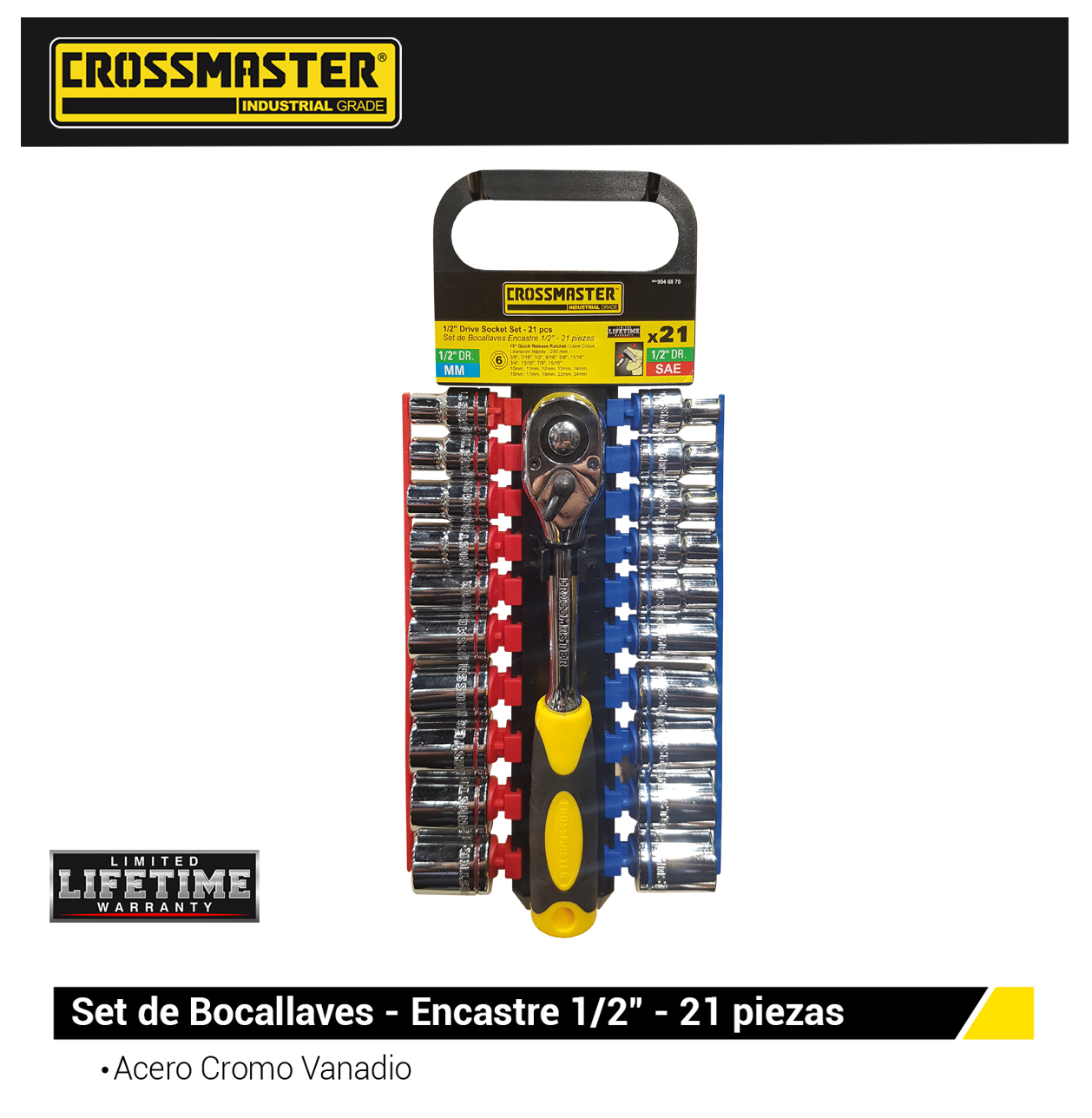 Set de bocallaves Hexagonales con Llave Crique Lib. rápida – Encastre 1/2″ – Milímetros y Pulgadas – 21 piezas: