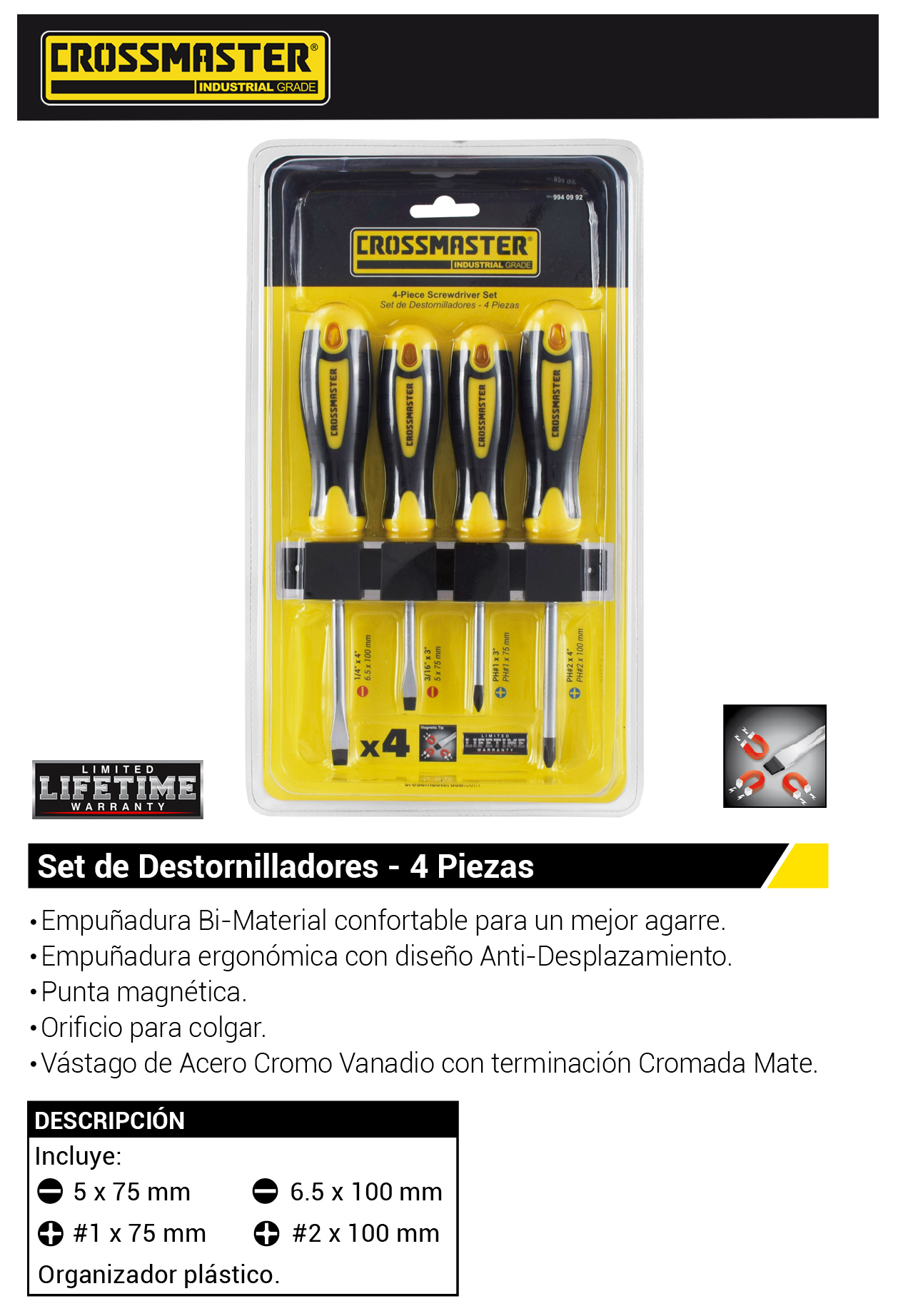 Set de destornilladores Phillips y Planos – 4 piezas: