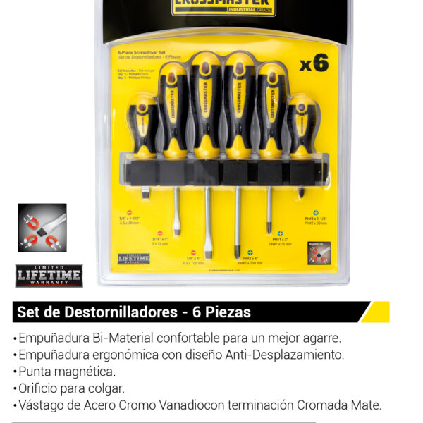Set de destornilladores Phillips y Plano - 6 piezas USD 13.20